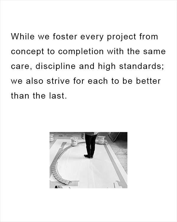 The highest standards of our craft are a constant for all projects, however our flexible and nimble nature tailors our process to the unique circumstances of each project and its team members.